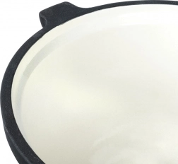A sima bézs zománcréteg megakadályozza az odaégést és megkönnyíti a karbantartást, így főzés után gyorsan kitisztítható az edény.
