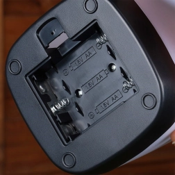 3× AA (1,5 V) elemmel, kábelek nélkül működik, a felső kapcsoló pedig intuitív be-/kikapcsolást és gyors módváltást biztosít.
