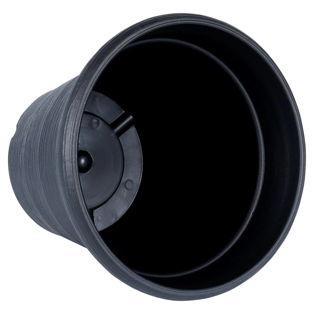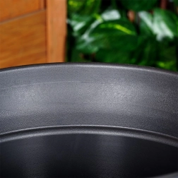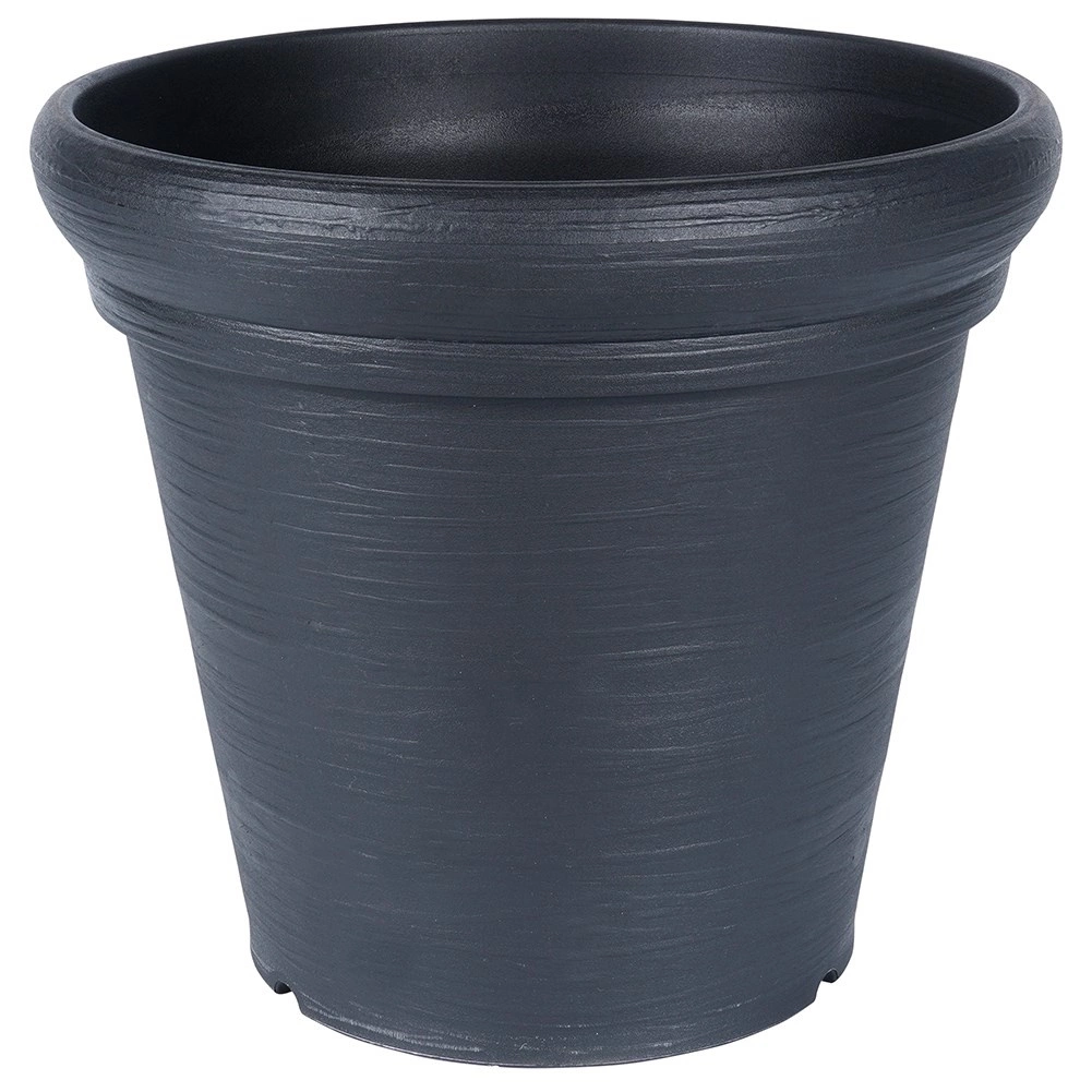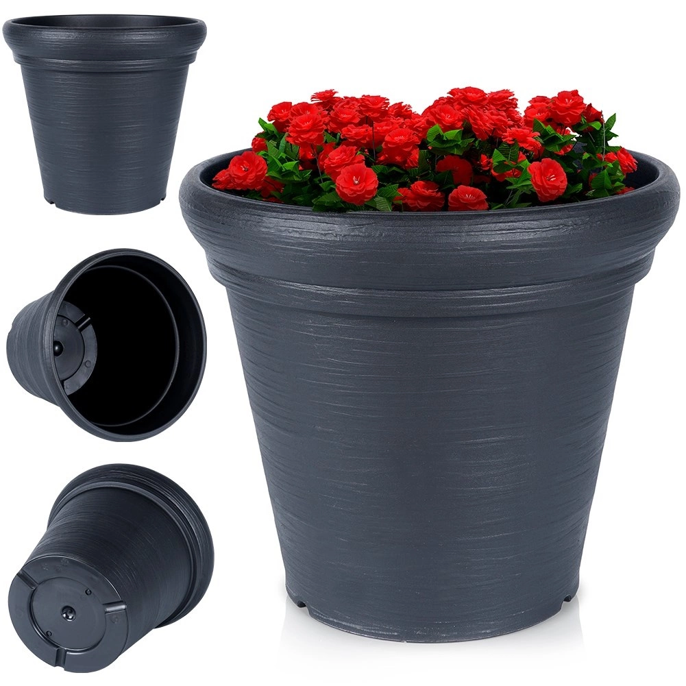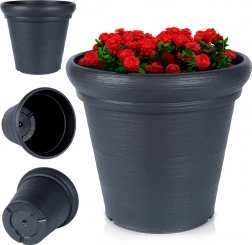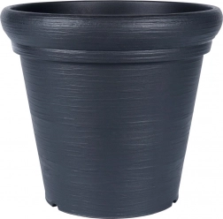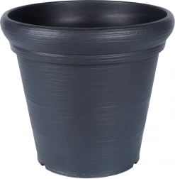 Sokoldalú, kerek virágcserép 38 cm felső átmérővel és 34 cm magassággal – ideális teraszra, erkélyre és a bejárati ajtó mellé. A kőhatás modern fekete színben reprezentatív keretet ad a növényeknek, miközben a cserép könnyű és könnyen mozgatható.