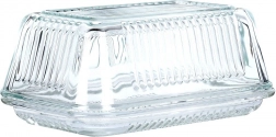 Elegáns Vilde üvegvajtartó klasszikus formával és bordázott dizájnnal, amely frissen és esztétikusan tálalva tartja a vajat. Minőségi, vastag, átlátszó üvegből készült, praktikus tetővel a szagok és szennyeződések elleni védelemhez, és az átlátszó anyagnak köszönhetően könnyen látható a maradék mennyiség. Mosogatógépben mosható.