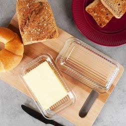 A pontosan illeszkedő tető megvédi a vajat a portól és a hűtőszagoktól, így tovább marad friss és azonnal tálalható.