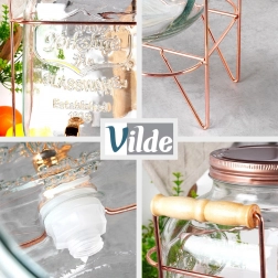 A széles nyaknak köszönhetően könnyen behelyezhet citruskarikákat, fűszernövényeket és jégkockákat. Az átlátszó üveg révén mindig jól látható a tartalom és a mennyiség. Az adagoló forró italokhoz nem alkalmas, hideg és hűtött italok felszolgálására készült. Eredeti VILDE márkatermék, európai szabványoknak megfelelően gyártva.