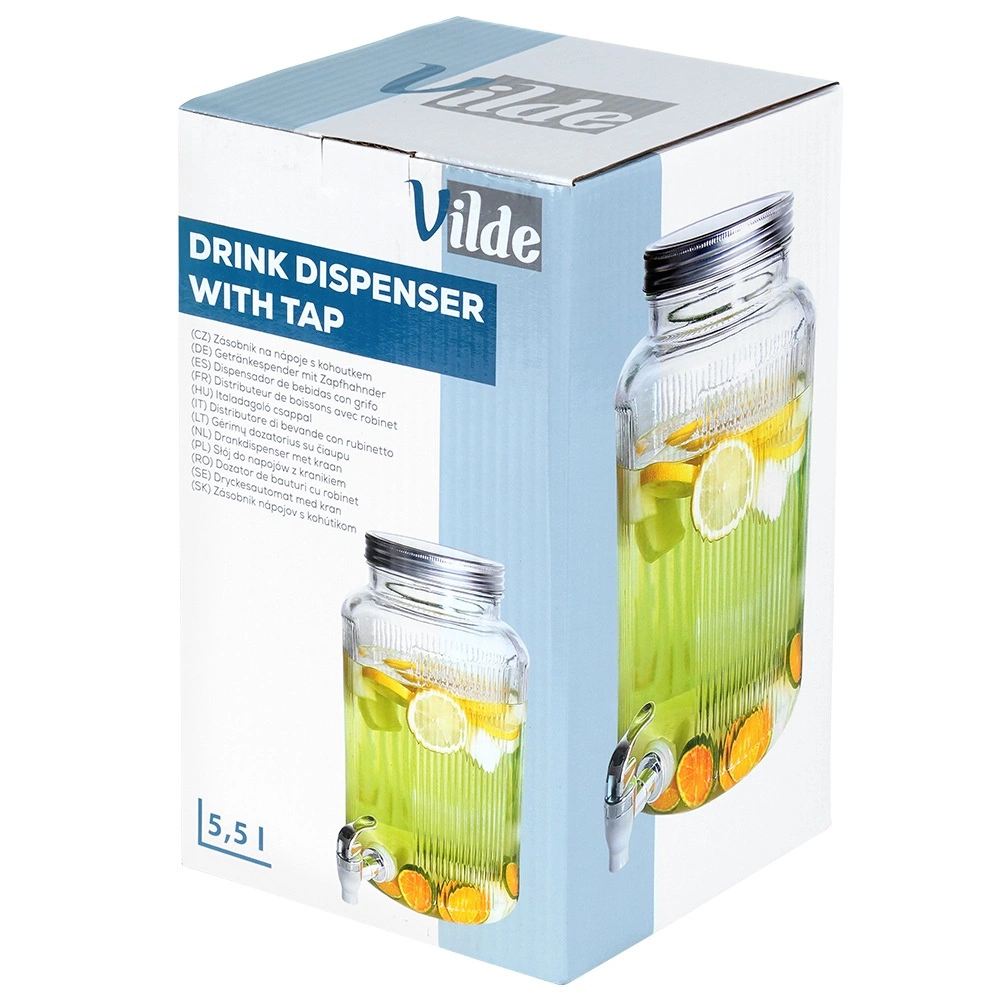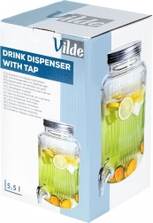 A nagy űrtartalmú üveg italkiöntő csappal megkönnyíti az italok felszolgálását bármilyen alkalommal. A széles nyak kényelmes töltést és tisztítást tesz lehetővé, az átlátszó test segíti a tartalom ellenőrzését, a fém fedél pedig megbízhatóan védi az italt a rovaroktól. Ideális citrusos vízhez, házi limonádéhoz, gyümölcslevekhez, sangriához vagy puncshoz (forró italokhoz nem alkalmas).