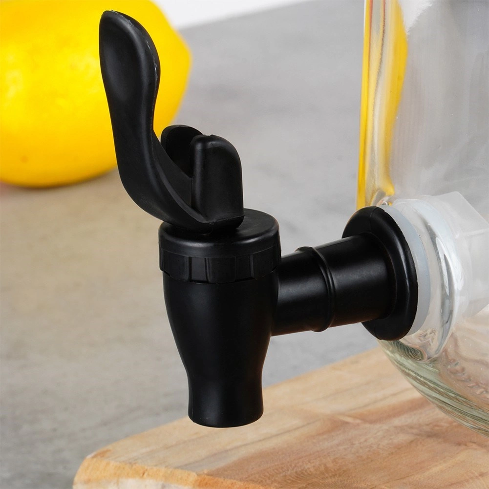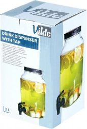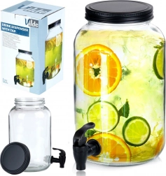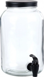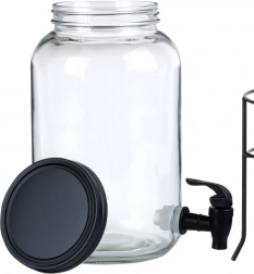 Stílusos, 3,2 l űrtartalmú üveg italadagoló praktikus csappal és fekete csavaros tetővel. Ideális limonádéhoz, gyümölcsös vízhez, jeges teához vagy puncshoz. A széles nyaknak köszönhetően könnyű a töltés és a tisztítás, az üvegtest pedig élelmiszerbiztonságos.