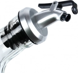 Praktikus üvegpalack fém záróelemmel és felhajtható kiöntővel az olívaolaj, ecet vagy házi ízesített olajok kényelmes adagolásához. A pontos adagolónak köszönhetően könnyedén kimérheti a megfelelő mennyiséget, és elkerülheti a rendetlenséget ízesítéskor és főzéskor.