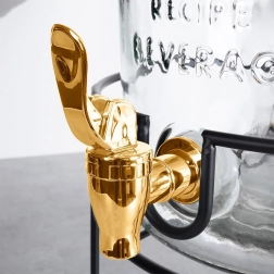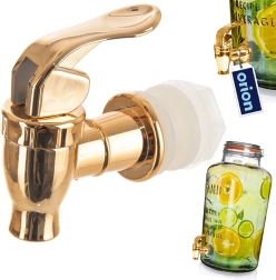 Az univerzális méret és menet biztosítja a kompatibilitást a legtöbb üveg limonádés, vizes vagy házi jegesteás edénnyel. A fémes fényű arany kivitel prémium megjelenést ad a terítésnek, miközben kényelmes karos vezérlést nyújt az egyenletes italadagoláshoz.
