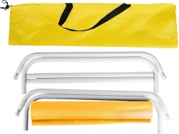 A nyugágy pillanatok alatt összecsukható, és az állítható pánttal ellátott mellékelt táskába helyezhető. A 60 × 18 × 8 cm-es kompakt méret elfér a csomagtartóban vagy a szekrényben.