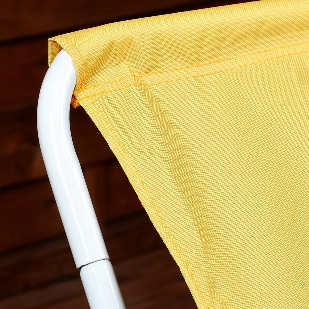 A sárga árnyalatú, tartós poliészter szövet kellemes tapintású, és komfortos pihenést nyújt a strandon és a kertben egyaránt.