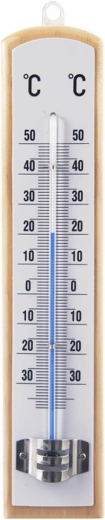 A hőmérő természetes fából készül, és akasztónyílással van ellátva, így könnyen falra helyezhető. A fehér, kontrasztos skála és a jól látható folyadékoszlop kiváló olvashatóságot biztosít nagyobb távolságból is.