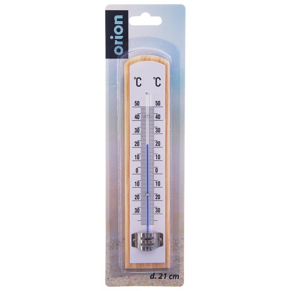 Univerzális fa hőmérő benti és kültéri hőmérséklet méréséhez, jól olvasható skálával -38 °C-tól 50 °C-ig. Klasszikus design, természetes fa, falra akasztható, és könnyen leolvasható erkélyen, teraszon és beltérben is.