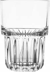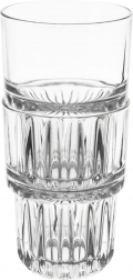 Praktikus, 320 ml űrtartalmú pohár kiváló minőségű, vastag üvegből, keskenyedő aljjal és függőleges bordázással a biztos fogásért. Átlátszó, elegáns tálaláshoz vízhez, limonádékhoz, gyümölcslevekhez és jeges teákhoz, mosogatógépben mosható és mikrózható.