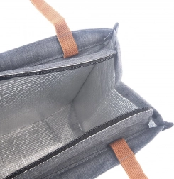 Ez a stílusos, 14 literes hőtáska a minőségi hőszigetelésnek köszönhetően megbízhatóan tartja hidegen vagy melegen az ételeket. A masszív szürke poliészter ellenáll a kopásnak, a barna fülek kényelmes fogást biztosítanak, a teljes hosszában futó cipzár pedig megkönnyíti a hozzáférést a tartalomhoz. A praktikus hátsó cipzáras zseb elnyeli az apróságokat, kulcsokat vagy szalvétákat.