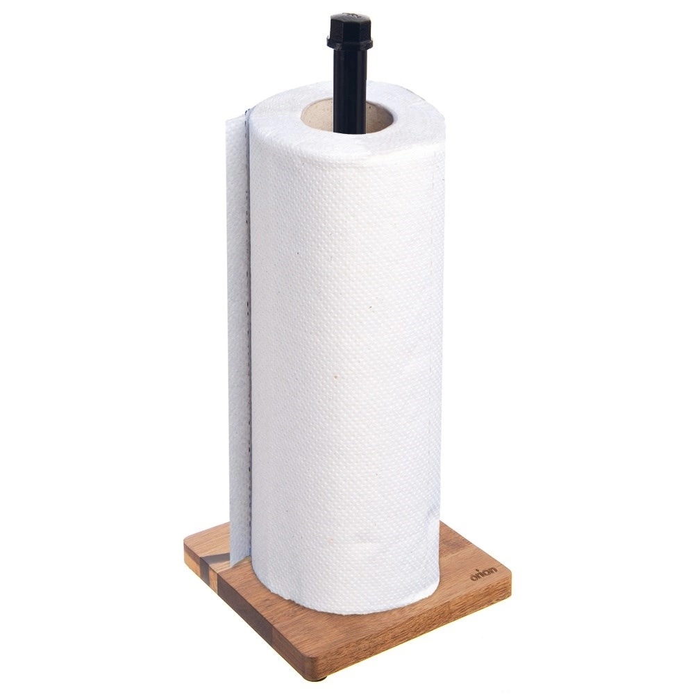 Elegáns papírtörlő-állvány akácfával és fekete fémmel, amely ötvözi a stabilitást, a gyors hozzáférést és a modern dizájnt ipari stílusban. A masszív, négyzet alakú talpnak, a univerzális méretnek és a védő filcpárnáknak köszönhetően ideális a konyhába, irodába és fürdőszobába is.