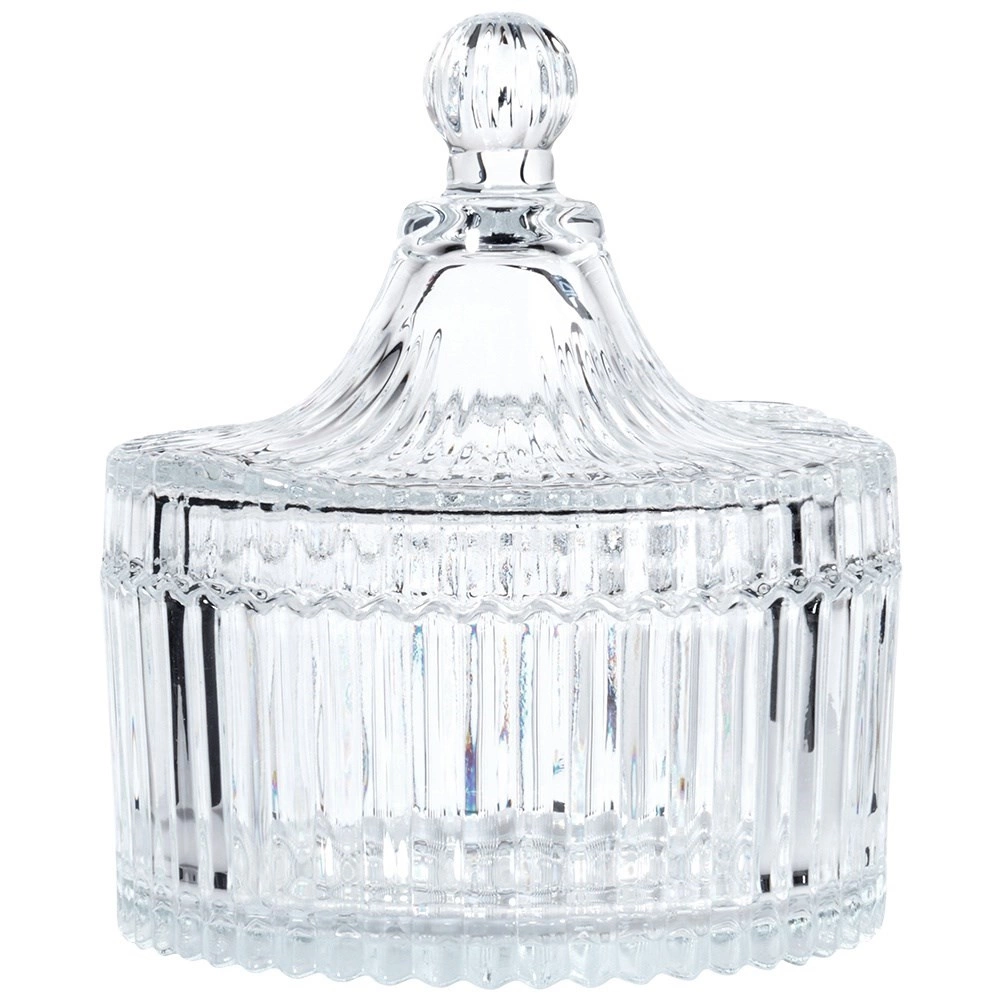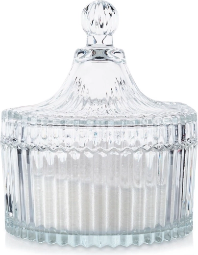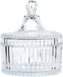 Elegáns üveg cukortartó fedéllel és fogantyúval, 250 ml űrtartalommal és 10 × 12 cm mérettel, ideális a stílusos cukorszervírozáshoz és a mindennapi használathoz. Minőségi, vastag üvegből készült, dekoratív, csiszolt kristályt idéző megjelenéssel. A áttetsző kivitel bármelyik étkészlethez illik, a praktikus fedél pedig védi és tisztán tartja a tartalmat. Mosogatógépben mosható.