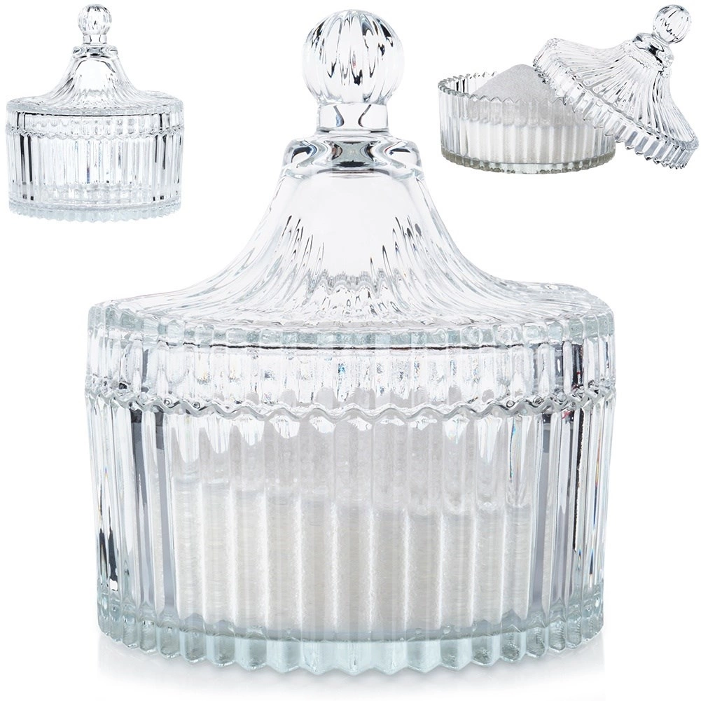 Ideális szemes és kockacukorhoz, cukorkákhoz vagy kisebb fürdőszobai kiegészítők tárolásához. Praktikus és dekoratív edény a mindennapi rendre.