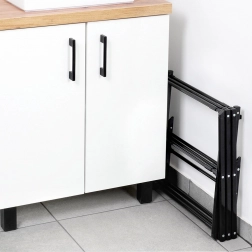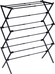 Praktikus, függőleges ruhaszárító elegáns fekete színben, amely maximálisan kihasználja a helyet a fürdőszobában, az erkélyen vagy a teraszon. A 47–78 cm-es teleszkópos hosszsabályozásnak köszönhetően könnyedén a pillanatnyi igényekhez igazíthatja a szárítófelületet – a kisebb adagoktól a nagyobb mosásokig. A porszórt fém váz szilárdságot, tartósságot és hosszú élettartamot biztosít.