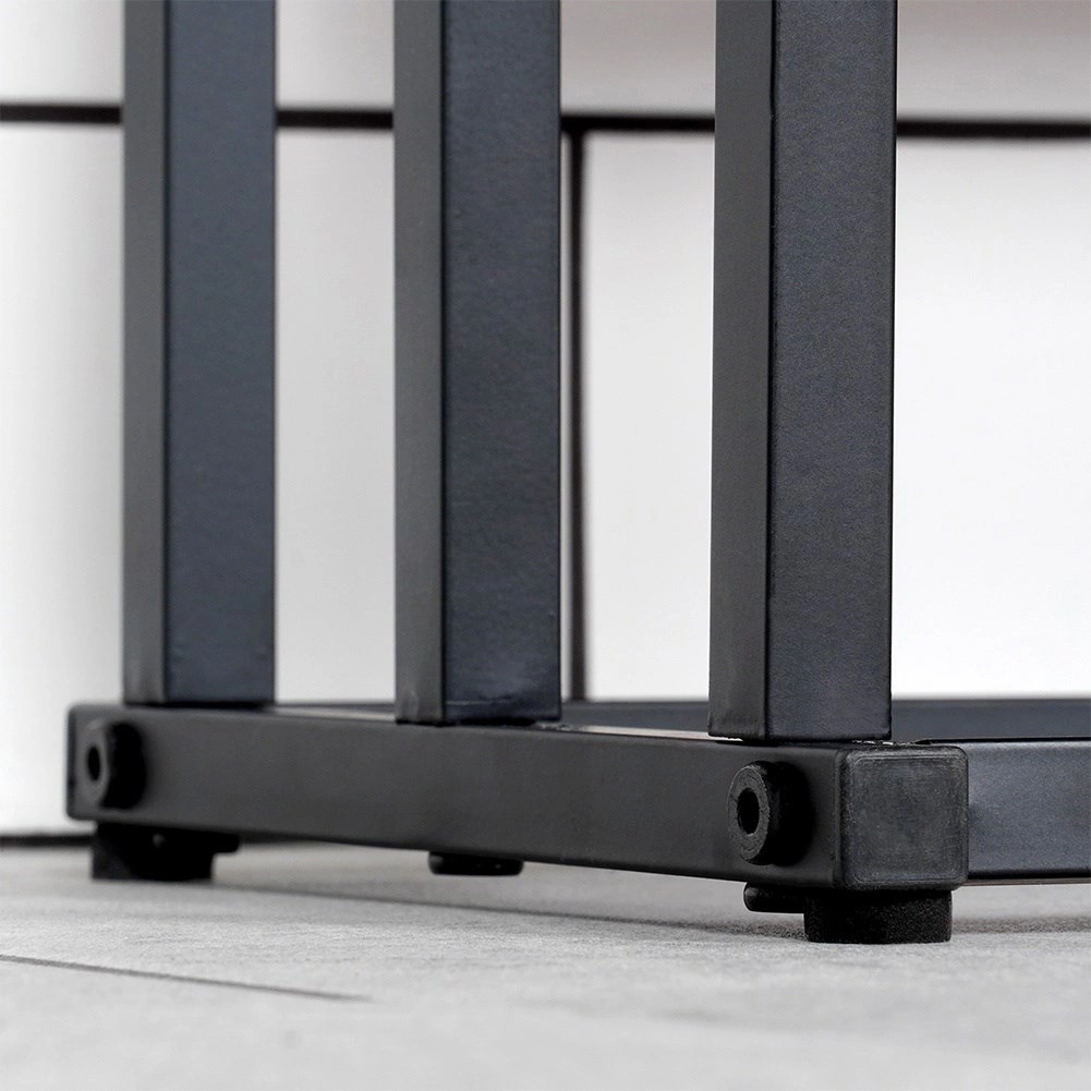 A porfestett fémból készült, robusztus test magas stabilitást nyújt. A csúszásgátló, védő lábak megóvják a padlót a karcolásoktól és segítenek kiegyenlíteni az egyenetlenségeket. Egyszerű felépítésének köszönhetően az összeszerelés gyors és könnyű – a szükséges csavarok a csomagban találhatók.