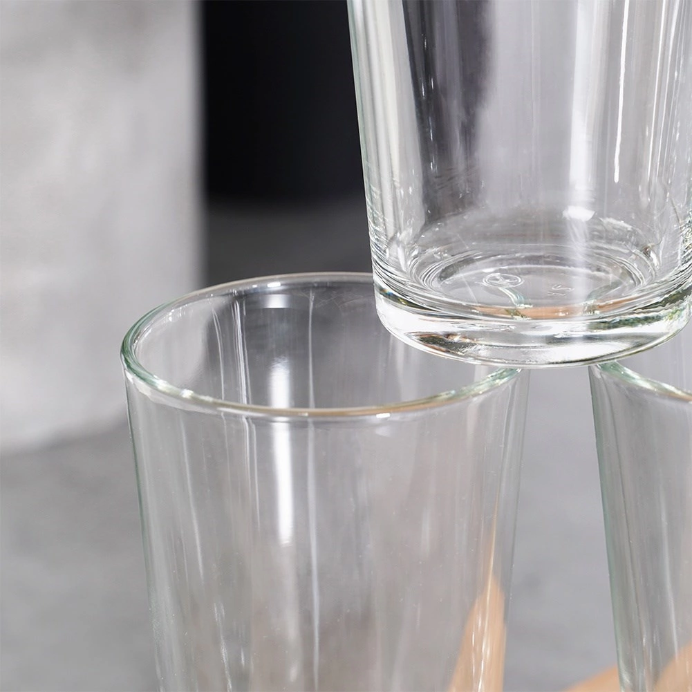 A poharak masszív, tiszta üvegből készültek, vastag talppal a stabilitásért és a hosszú élettartamért a mindennapi használat során.