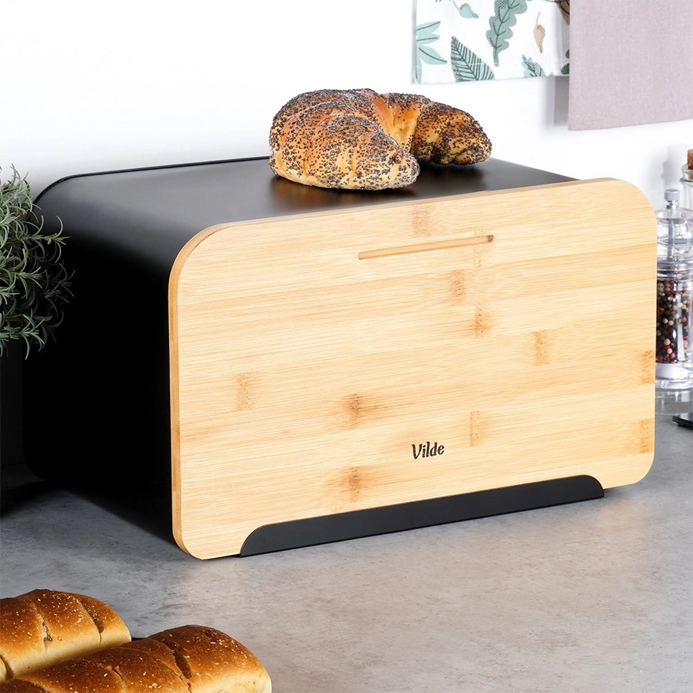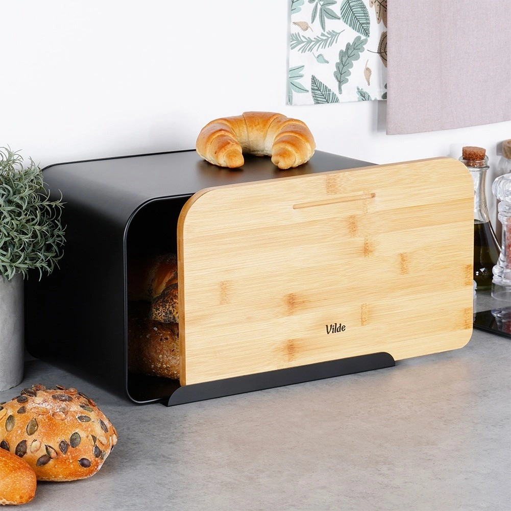 A bambusz fedél vágódeszkaként is használható – csak emelje le, és kényelmesen felszelheti a kenyeret vagy a bagettet. A tágas kialakítás különféle pékáruknak ad helyet, és letisztult dizájnja könnyen illeszthető modern és klasszikus enteriőrökhöz is.
