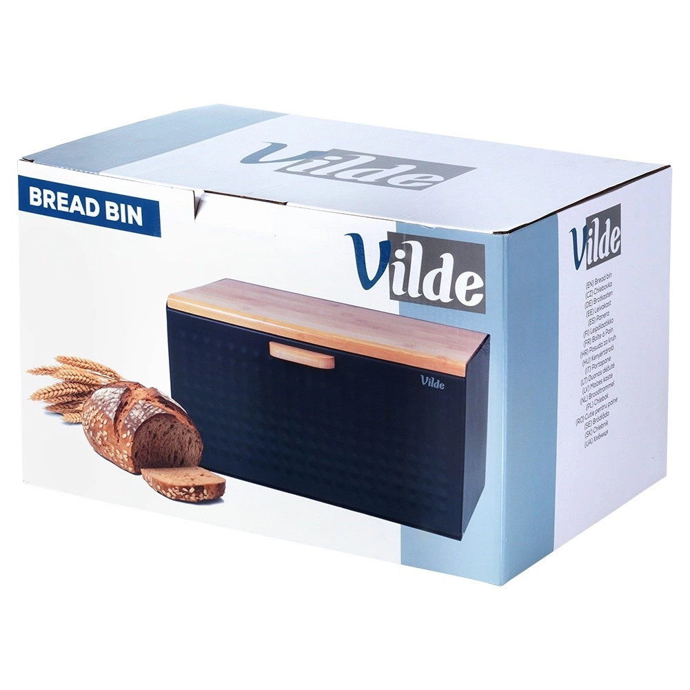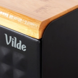 Az elegáns Vilde kenyértartó a fekete fémet természetes fával ötvözi, és tovább frissen tartja a pékárut. Kétféle nyitást kínál (felülről és elölről), tágas kapacitással és masszív, tartós kialakítással, csúszásgátló talpakkal. A szorosan záródó fedél megóvja a pékárut a kiszáradástól és az ízvesztéstől, míg a felső fedél praktikus vágódeszkaként is használható.