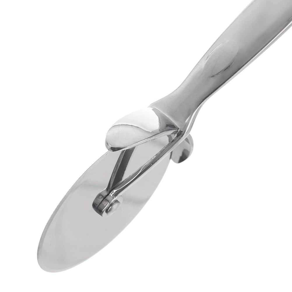 A rozsdamentes acélból készült, éles forgókerék könnyedén átvág a kérgen és a bőséges feltéten is, egyenletes szeleteket készít szakadozás nélkül.