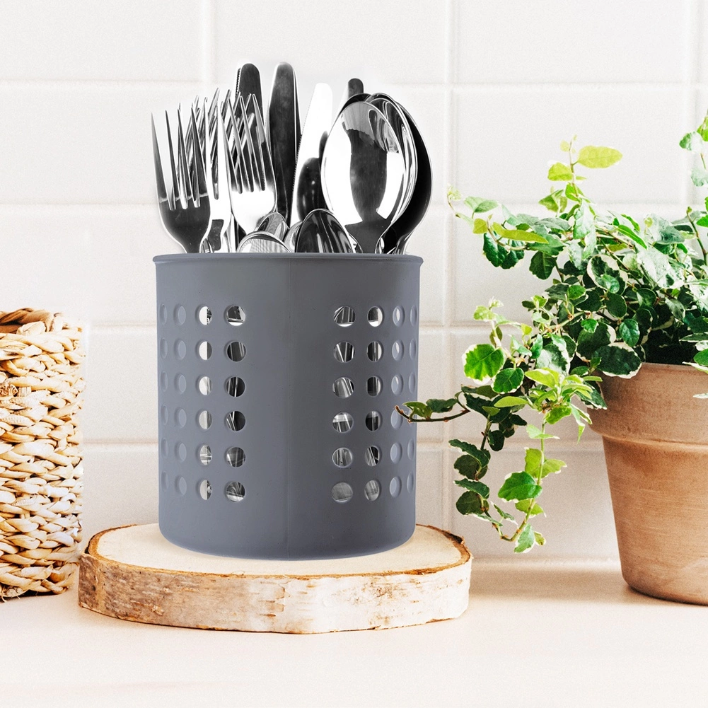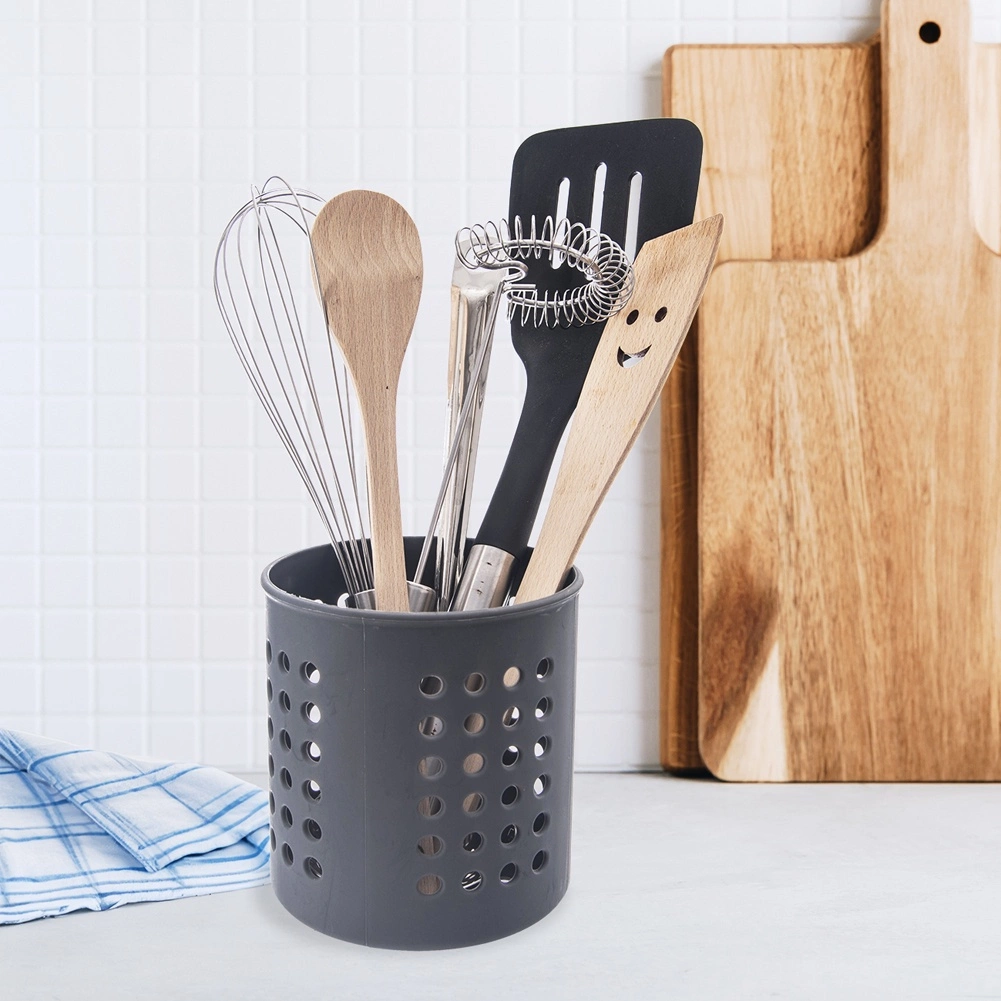 Tartsa áttekinthetően a konyhát a praktikus csepegtetővel evőeszközökhöz és konyhai eszközökhöz. A perforált oldalak és az alj gyors száradást biztosítanak és megakadályozzák a nedvesség felhalmozódását, így a kanalak, villák és spatulák mindig készen állnak a következő használatra. A stabil, hengeres forma jól illik a munkalapra és a mosogató közelébe.