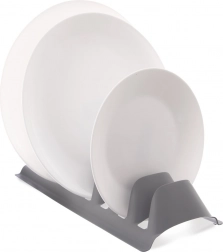 Praktikus konyhai rendszerező, amely függőleges helyzetben, áttekinthetően tartja a fedőket, tányérokat és vágódeszkákat. Akár 8 darabot is befogad, könnyű és tartós, minőségi műanyagból, univerzális szürke színben. Használható a pulton, szekrényben vagy mély fiókban, és mosogatógépben mosható.