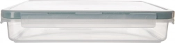 Praktikus, négyszögletes 900 ml-es ételtároló alacsony profillal, ideális sajtokhoz és felvágottakhoz, hűtőszekrénybe és kamrába. A légmentesen záródó fedél 4 klippel és szilikon tömítéssel tovább frissen tartja az ételeket. Ellenáll a -20 °C-tól +100 °C-ig terjedő hőmérsékletnek, alkalmas mikróba (fedél nélkül), fagyasztóba és mosogatógépbe. Átlátszó kivitel a tartalom könnyű ellenőrzéséhez.