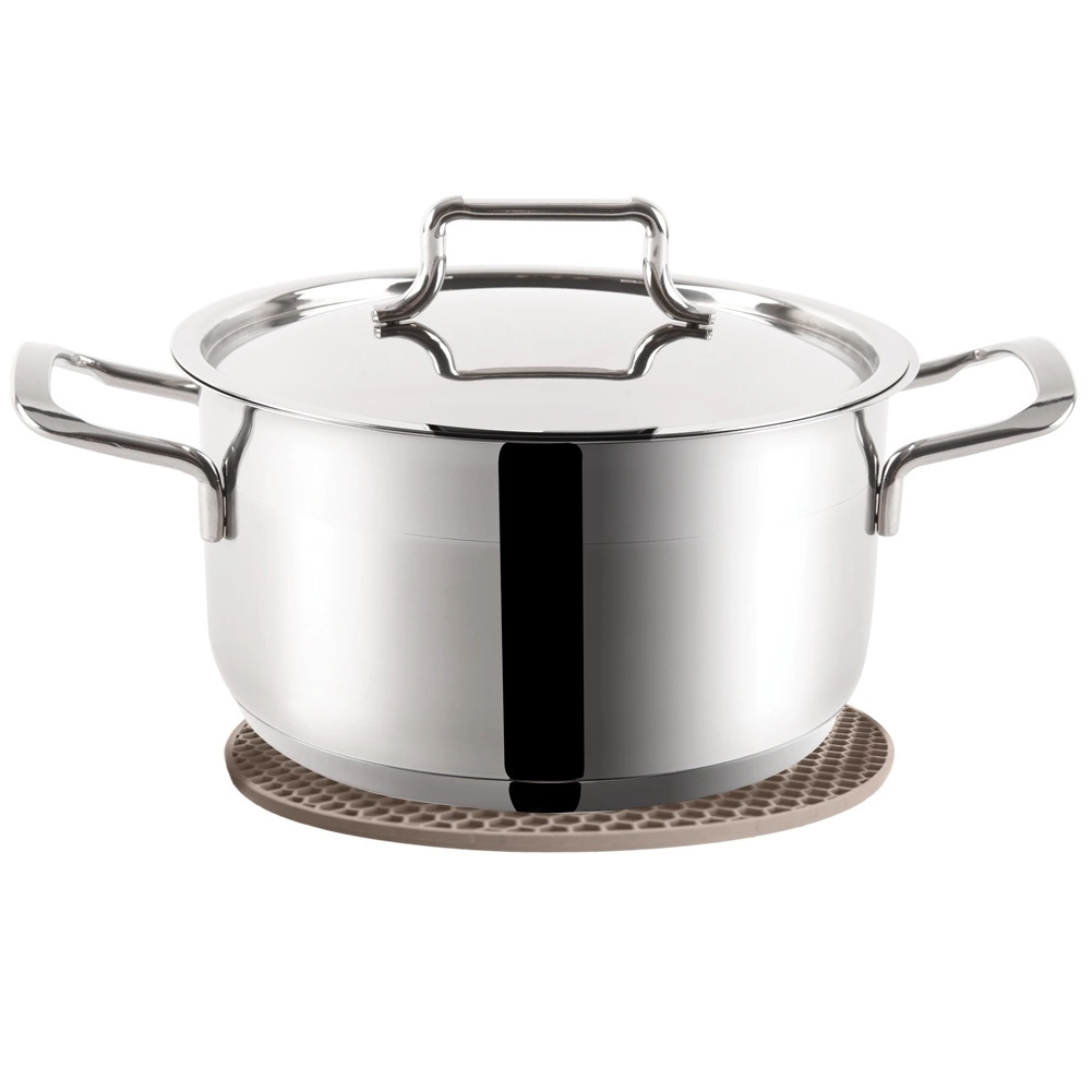 Ez a minőségi szilikon alátét semleges bézs színben ideális lábasok, serpenyők és tepsik biztonságos lerakásához közvetlenül a tűzhelyről vagy a sütőből. A rugalmas, mégis erős szilikon méhsejt (honeycomb) mintával kiváló hőszigetelést és biztos fogást nyújt csúszás nélkül.