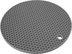 Praktikus szilikon edényalátét forró edényekhez, 17,5 × 17,5 cm méretben, amely megvédi a munkalapot és az asztalt a hőtől és a karcolásoktól. Csúszásgátló méhsejt-mintázattal, akasztónyílással és tartós szilikonból készül, mosogatógépben mosható. -10 °C-tól +220 °C-ig hőálló, nélkülözhetetlen minden konyhában.