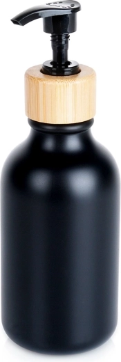 Stílusos szappanadagoló matt fekete felülettel és természetes bambuszgyűrűvel, amely visszafogottan egészíti ki a modern, klasszikus és ipari enteriőröket. Ideális folyékony szappanhoz, fertőtlenítőhöz vagy mosogatószerhez, és kompakt méreteinek köszönhetően bármelyik mosdóra vagy konyhapultra elfér.