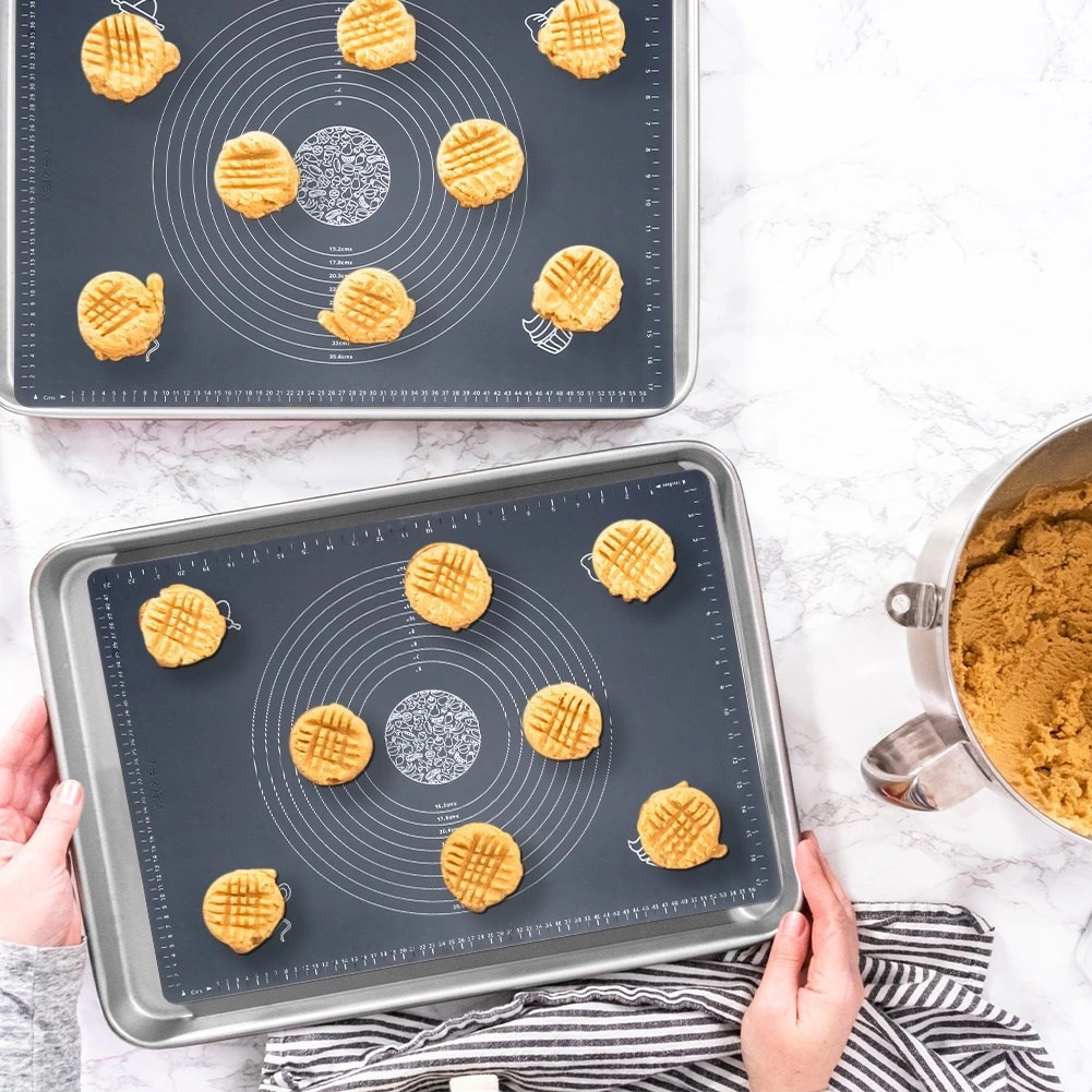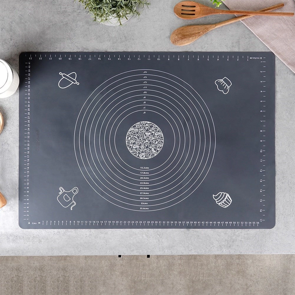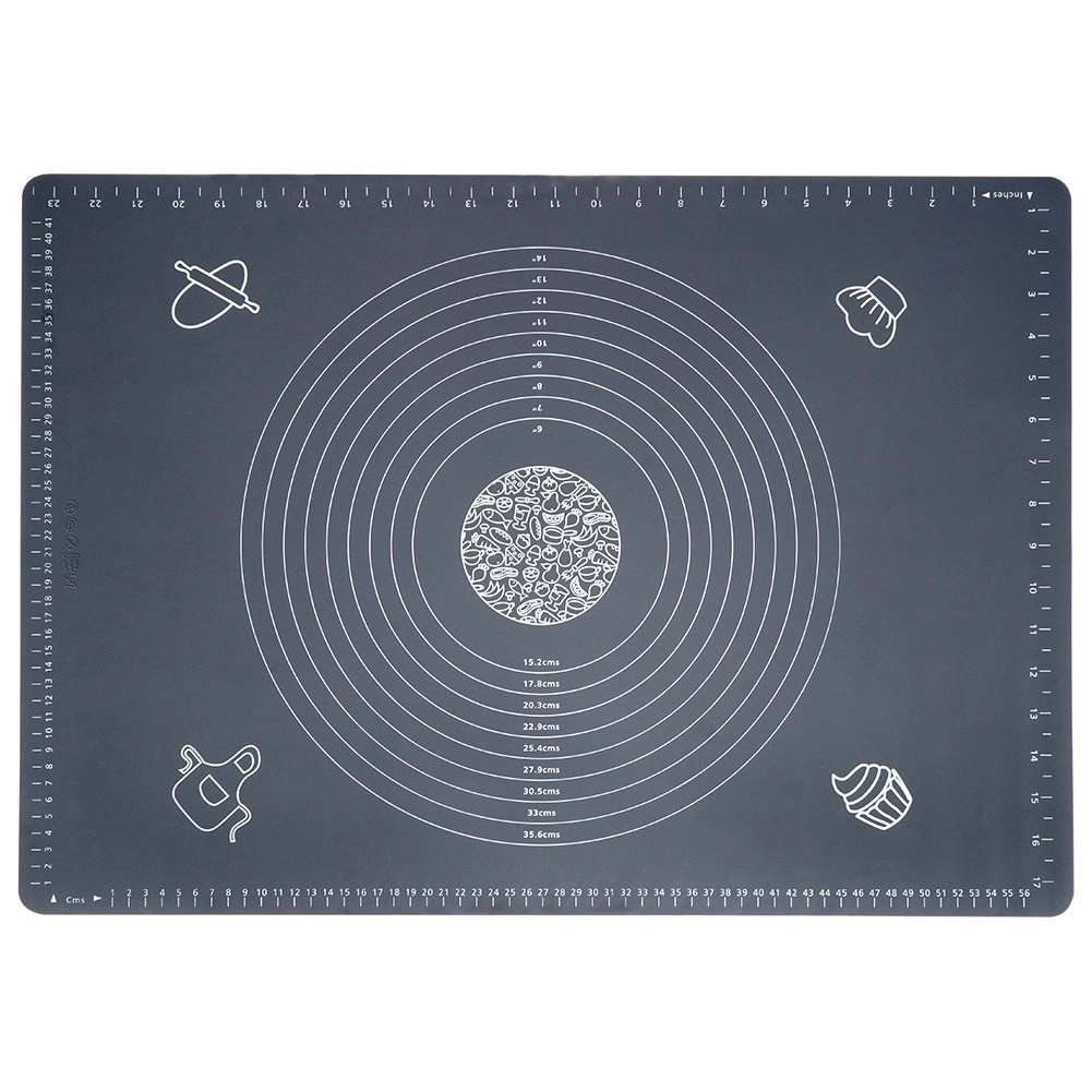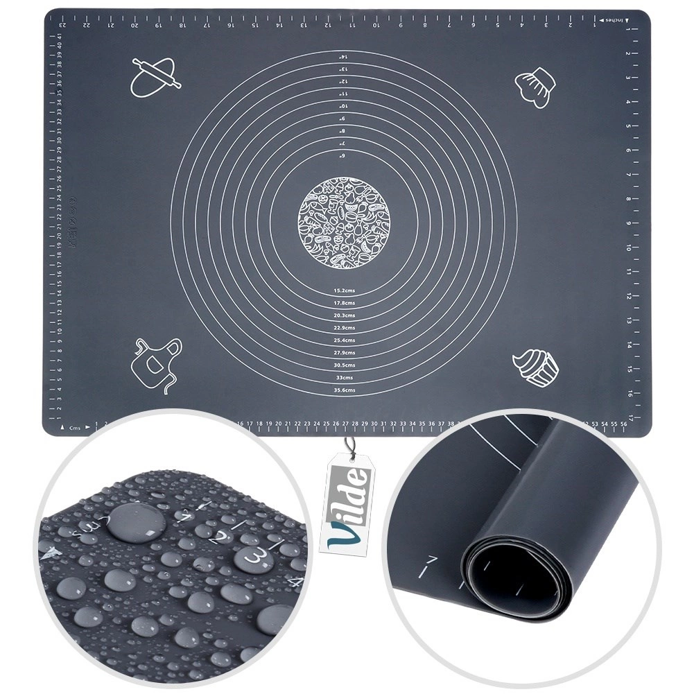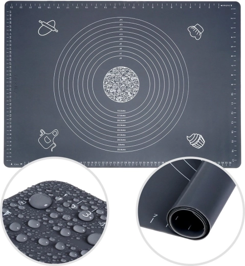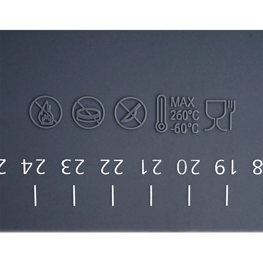 Az integrált centiméteres vonalzók és a koncentrikus körök segítenek a pizza, pitetészta vagy keksz kívánt átmérőre formázásában. A lap tartós, élelmiszeripari szilikonból készül, amely bírja a fagyot és a magas hőt is, így sütőlapként is használható, majd gond nélkül elmosható a mosogatógépben.