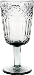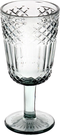 Elegáns fekete borospohár időtlen csiszolt mintával, sokoldalú felhasználással fehér és vörösborhoz, italokhoz és desszertekhez. Kiváló minőségű, vastag üvegből készült füstös fekete árnyalatban, stabil talppal, kényelmesen formázott szárral és gépi mosogatásra alkalmas kivitelben. Űrtartalom 270 ml, méret 8 × 17 cm.