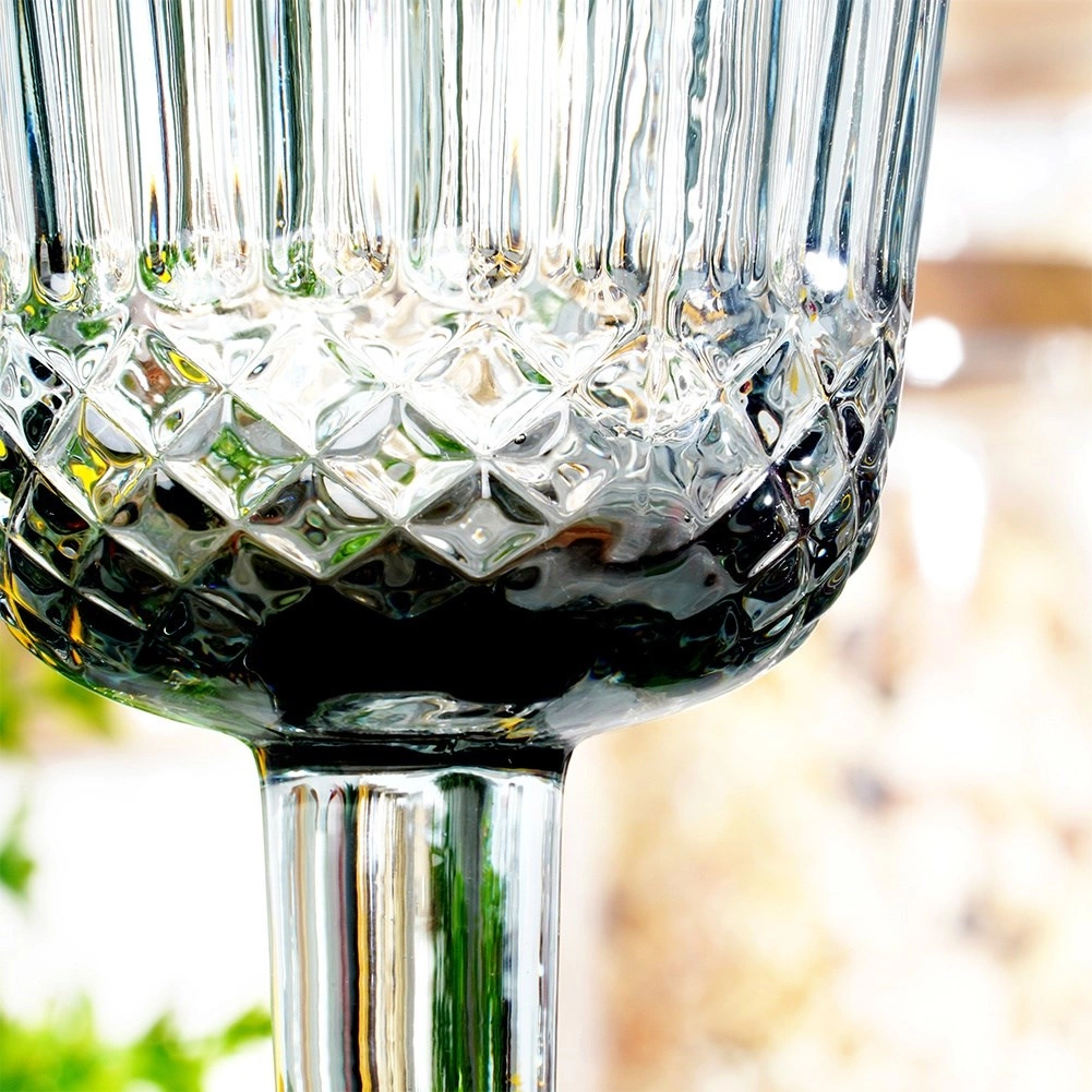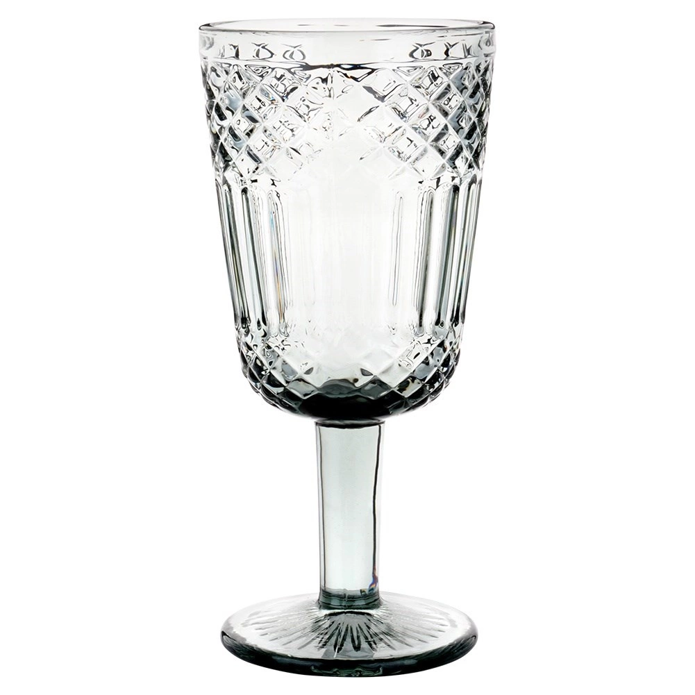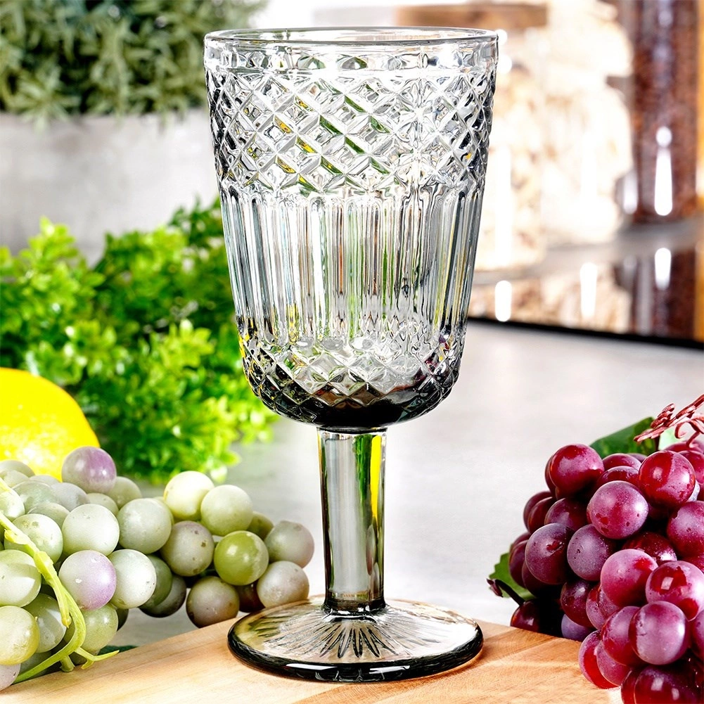 Ez a füstös fekete kivitelű üvegkehely látványos, kristályt idéző csiszolt díszítéssel hívja fel magára a figyelmet. Univerzális formájának köszönhetően alkalmas fehér és vörösborhoz, de vízhez, üdítőkhöz vagy desszertek stílusos tálalásához is. Időtlen dizájnja bármely terítékbe remekül illeszkedik.