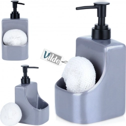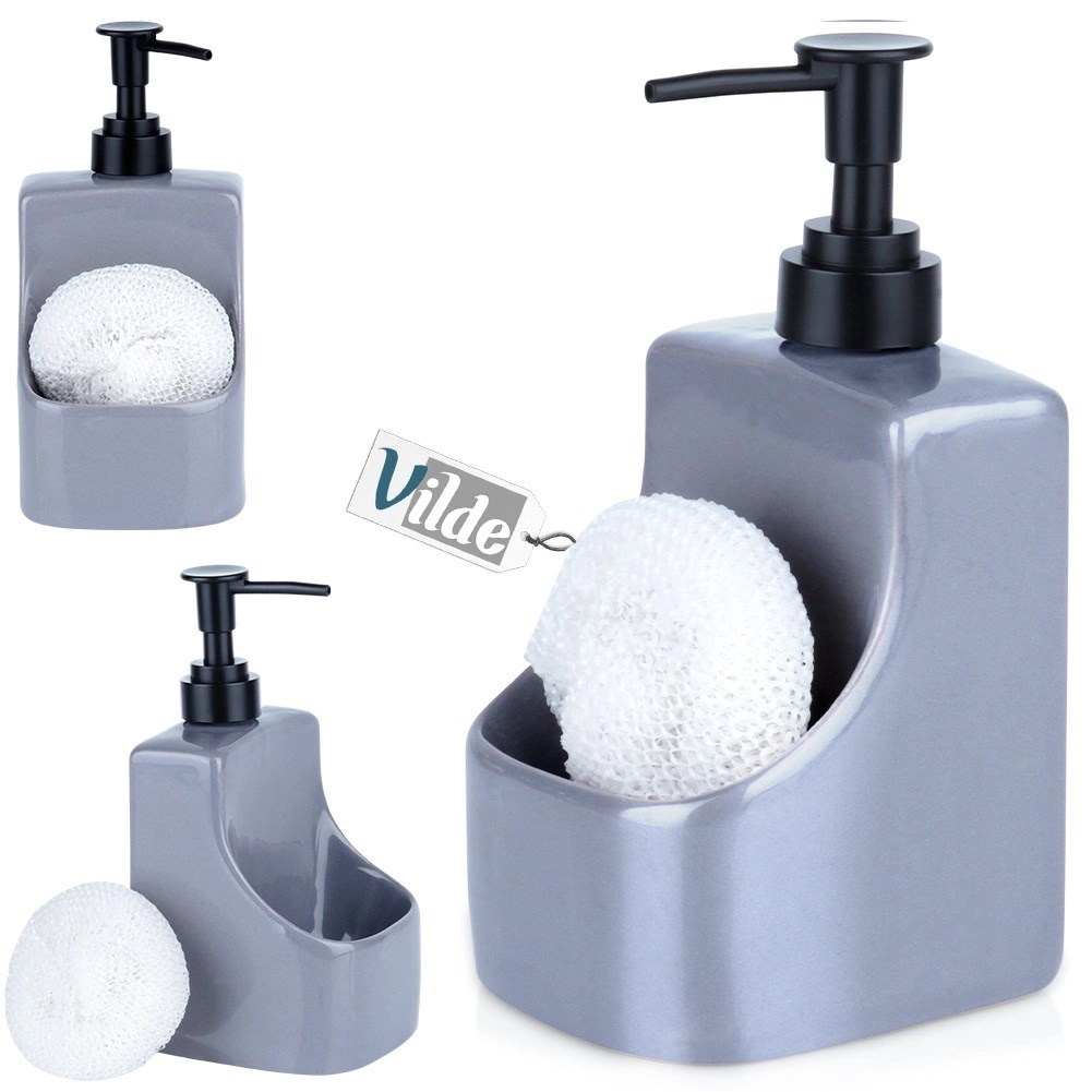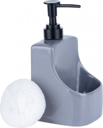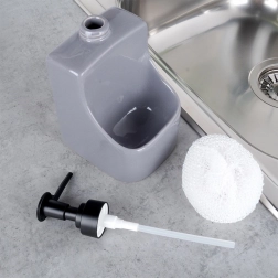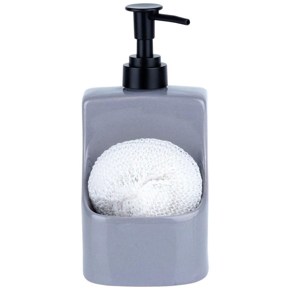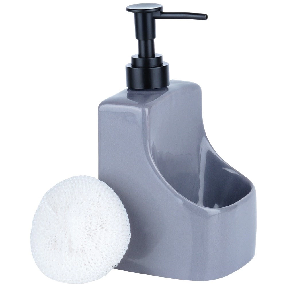 Ez a szürke kerámia mosogatószer-adagoló elegáns dizájnt ötvöz praktikus tárolóhellyel a szivacsnak vagy kendőnek. Kompakt méreteinek köszönhetően bármelyik konyhapultra vagy akár a fürdőszobai mosdó mellé is illik. A fekete pumpa egyenletes adagolást és egyszerű használatot biztosít.