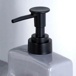 A fényes, szürke kerámiatest elegáns megjelenésű és könnyen tisztítható, a fekete pumpa pedig kényelmes adagolást biztosít.
