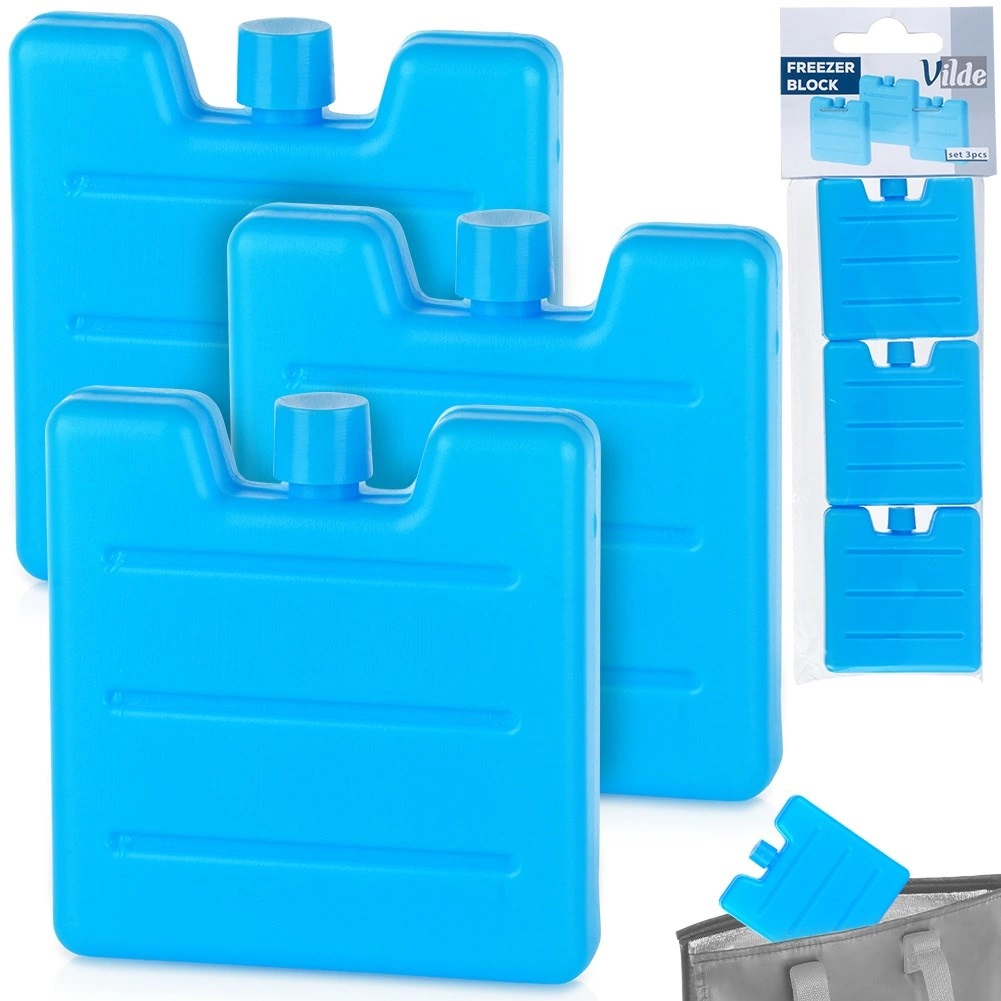 3 darabos hűtőbetét készlet, mindegyik 100 ml űrtartalommal, amely tovább hidegen tartja italait és ételeit hűtőtáskában vagy hordozható hűtőben. Kompakt méretek a legtöbb hűtőládába illeszkednek, a betétek biztonságosak, tartósak és újra felhasználhatók. Ideális kirándulásokhoz, piknikhez és forró nyári napokra.