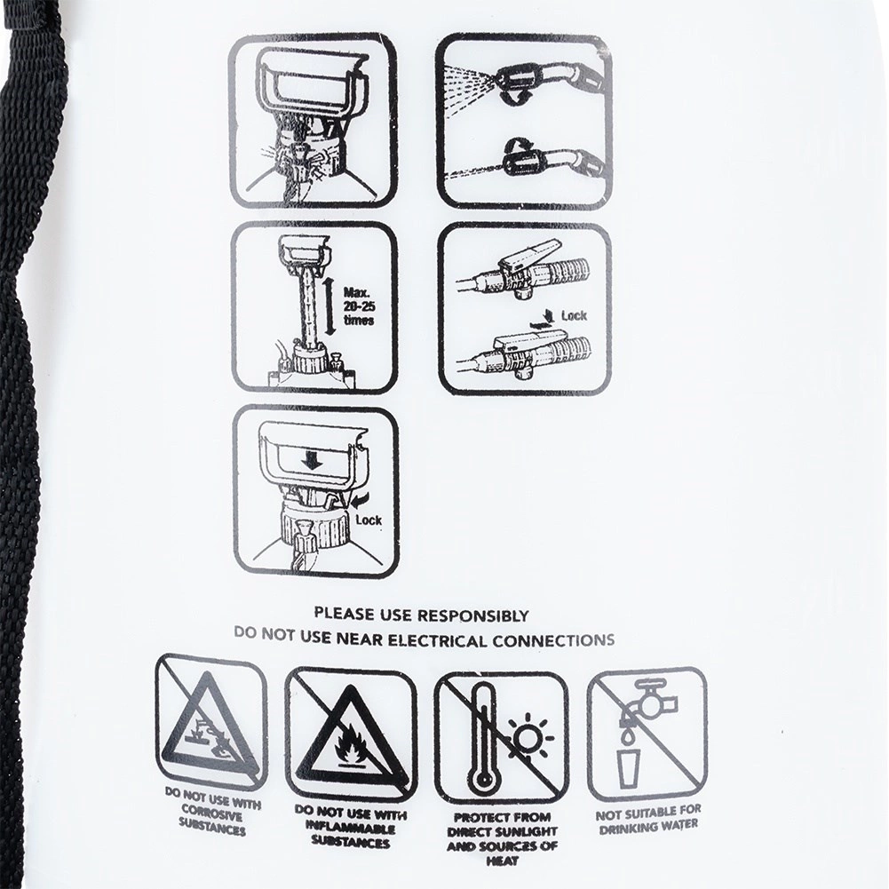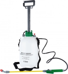 5 liter űrtartalom a hosszabb munkához ritkább utántöltéssel. A kézi pumpa könnyen létrehozza a munkanyomást akár 3,2 barig, a túlnyomás-szelep növeli a biztonságot.