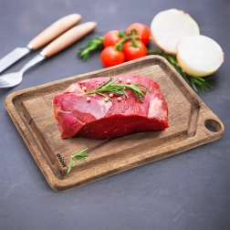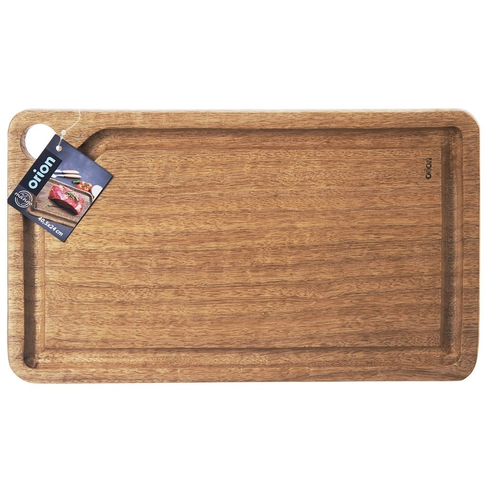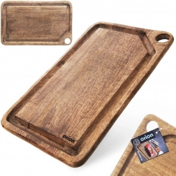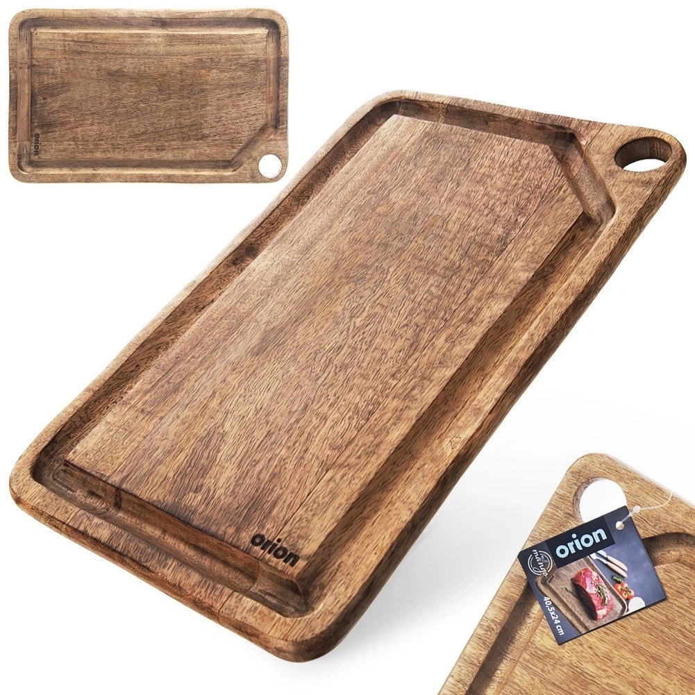 Ez a masszív mangófa vágódeszka megóvja a munkafelületet, és rendben tartja a konyhát. A mély peremvájatnak köszönhetően a folyadékok nem folynak szét, ezért remek húsok, lédús paradicsom vagy citrusfélék előkészítéséhez. A természetes faerezetű felület stílust ad sajtok, felvágottak és snackek tálalásához is.