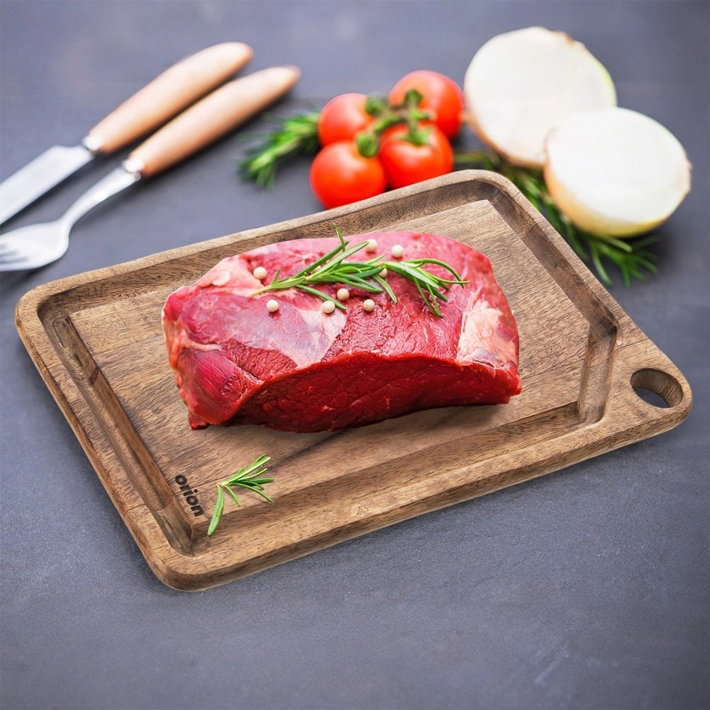Elegáns, mangófából készült vágódeszka 39,5 × 23 cm méretben, 2 cm vastagsággal, ideális mindennapi szeleteléshez és tálaláshoz. A természetes mangófa ellenáll a nedvességnek és a deformációnak, gyorsan szárad, és gyönyörű erezetű. A praktikus mély peremvájat felfogja a húsok, gyümölcsök és zöldségek leveit, a felakasztó nyílás pedig megkönnyíti a tárolást.