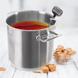 A tartós rozsdamentes szonda pontos mérést biztosít az étel belsejében. A praktikus klipsz a hőmérőt a fazék peremén tartja, kézben tartás nélkül.