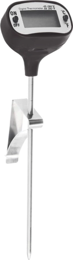 Praktikus digitális hőmérő hosszú, rozsdamentes acél beszúró szondával a hús, folyadékok és szószok hőmérsékletének pontos méréséhez. Tartomány: -45 °C – +200 °C (valamint +50 °F – +392 °F), jól olvasható LCD kijelző, °C/°F váltás és klipsz az edényhez rögzítéshez. Kompakt, 17 cm-es kivitel, ideális főzéshez, sütéshez, rántáshoz és grillezéshez.