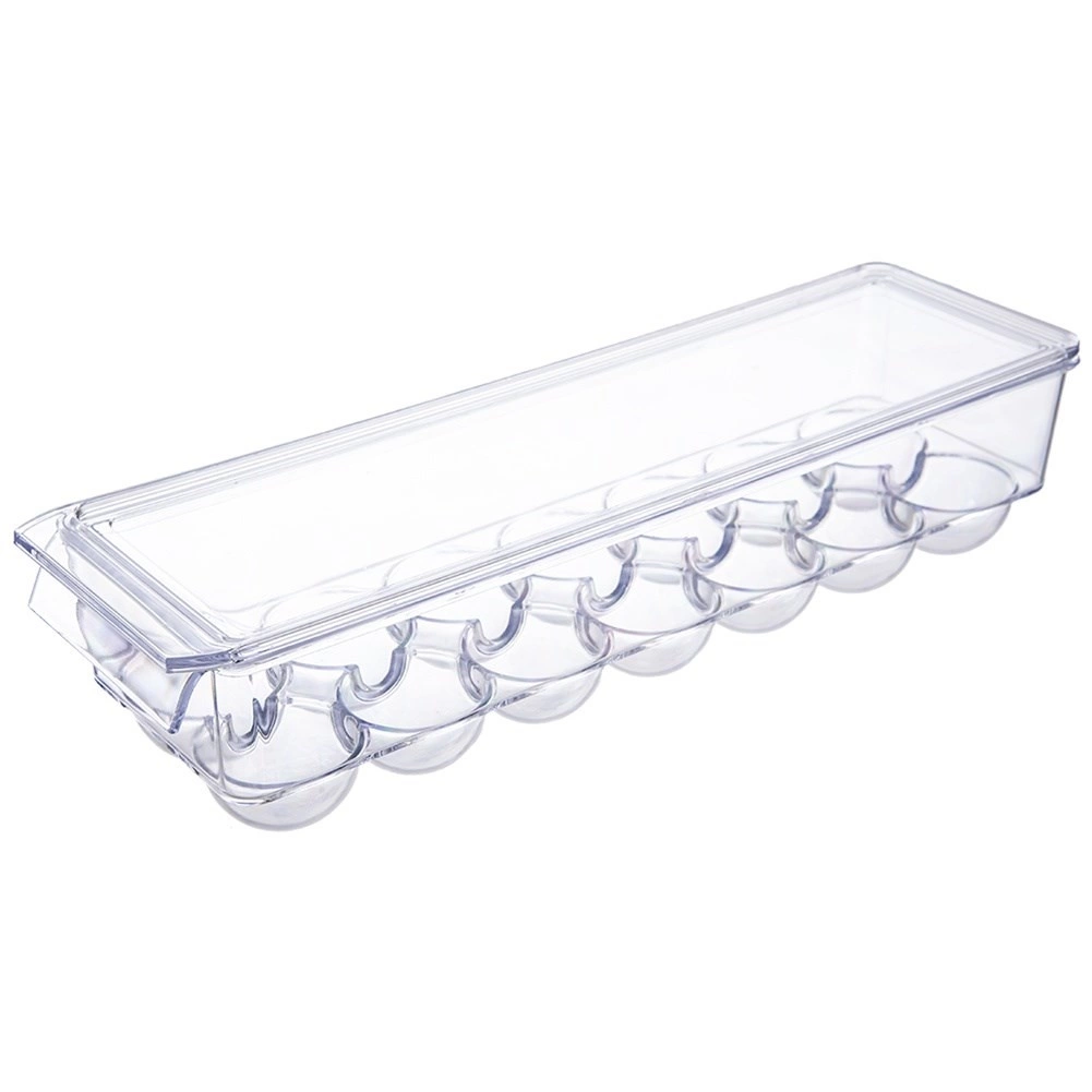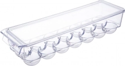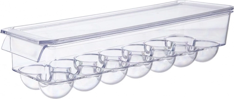 A 36 × 10,5 × 8,5 cm méretű, praktikus tojástartó minőségi, átlátszó műanyagból készült. A formázott mélyedések stabilan tartják a tojásokat, megakadályozzák a gurulást, és védik az ütődésektől, valamint a hűtőszagok átvételétől. A fedél biztonságos több doboz egymásra rakását teszi lehetővé, maximalizálva a helykihasználást.