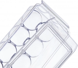 A masszív fedél megóvja a tojásokat a sérülésektől és a nem kívánt hűtőszagoktól, valamint lehetővé teszi több doboz egymásra helyezését.
