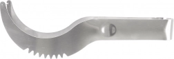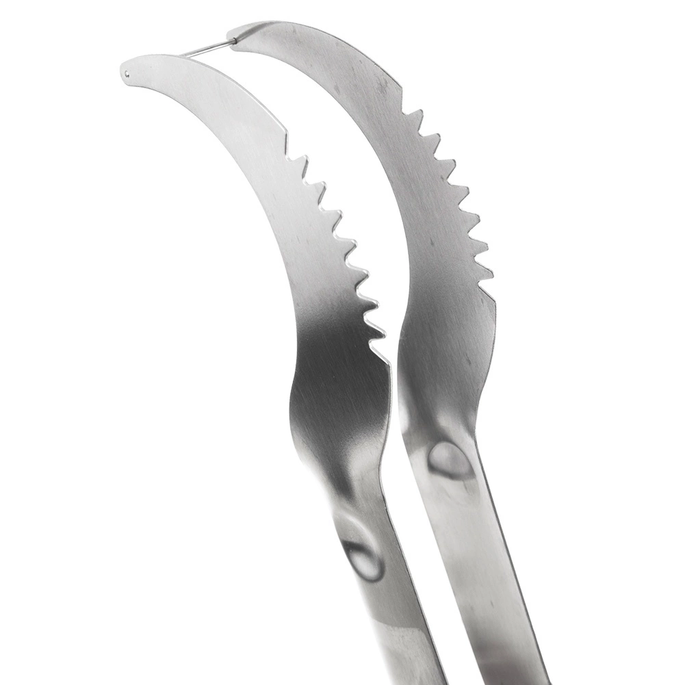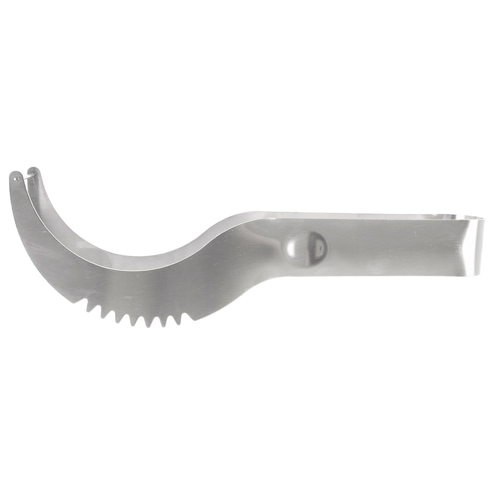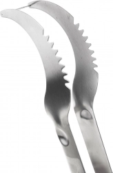 Praktikus dinnyeszeletelő és -fogó kiváló minőségű rozsdamentes acélból az egyenletes darabokra történő gyors és pontos porciózáshoz. A görbített penge és a recés él révén könnyedén kivágja a gyümölcshúst, majd az eszközt csipeszként használva kényelmesen kiveheti és tálalhatja. Tartós rozsdamentes acél, biztonságos és ergonomikus használat, egyenletes szeletek és kockák, mosogatógépben mosható.