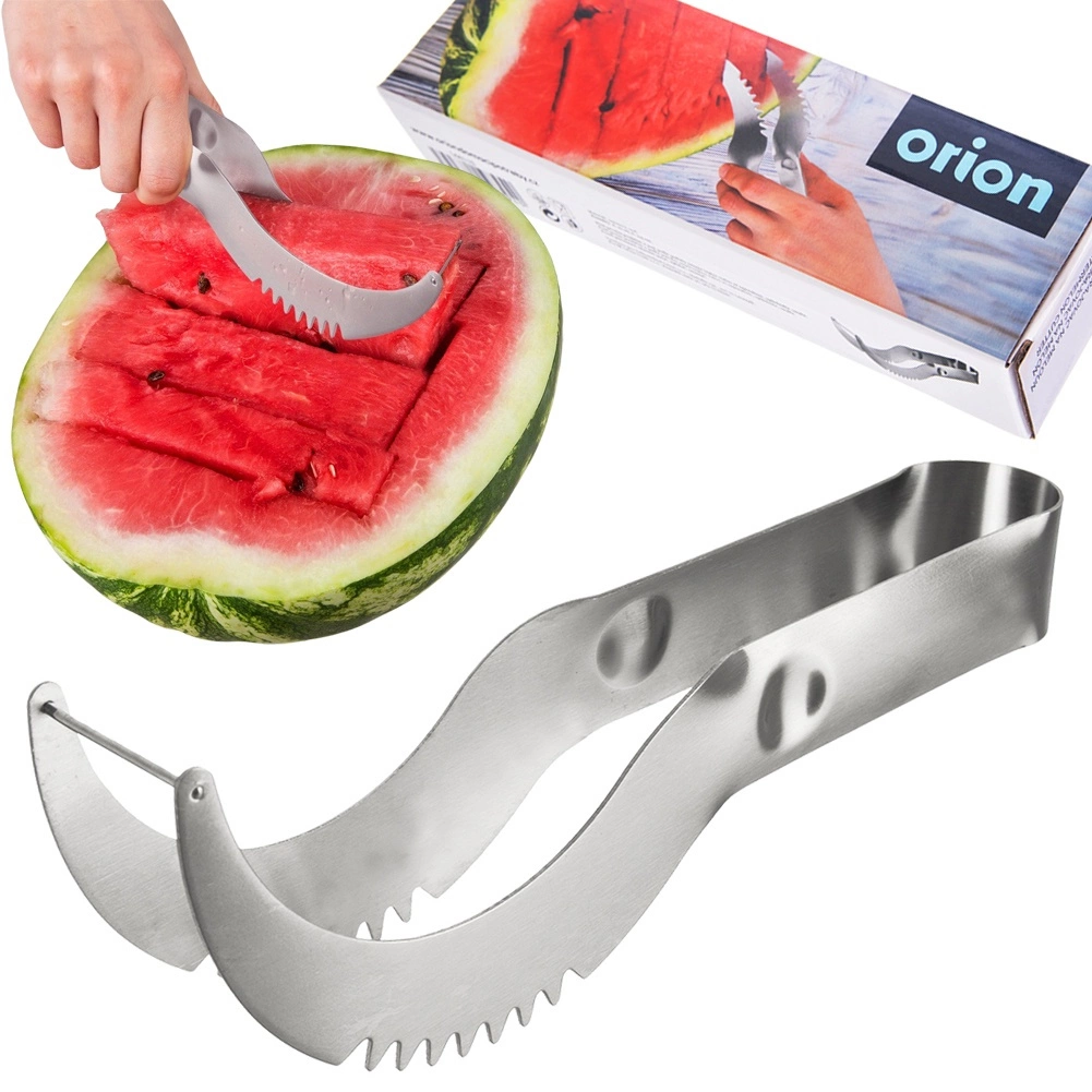 Élvezze a nyarat erőfeszítés nélkül – az ORION rozsdamentes dinnyeszeletelő egyesíti a kés és a csipesz funkcióját. A görbített test recés éllel tiszta vágásokat készít, míg a rugalmas kialakítás lehetővé teszi a kész darabok egyszerű megfogását és tányérra helyezését. Ideális egyenletes kockák vagy hasábok gyors előkészítéséhez dinnyéből és más tökfélékből.