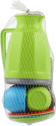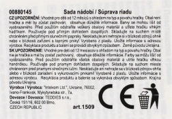 A szett mindent tartalmaz egy kis teadélutánhoz: kancsót, csészéket csészealjakkal és kanalakkal vidám színekben. Praktikus hálóban csomagolva, amely megkönnyíti a tárolást és a hordozást. 12 hónapos kortól ajánlott.