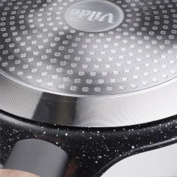 A több rétegű talp indukciós betéttel a hőt a serpenyő teljes felületén eloszlatja, ami időt és energiát takarít meg, és egyenletes átsülést garantál.