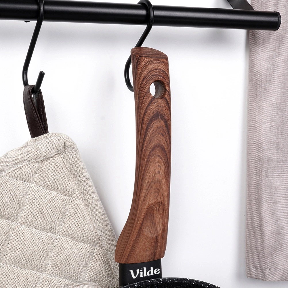Az alumínium test több rétegű aljjal gyors és egyenletes felmelegedést biztosít, így időt és energiát takarít meg. Az ergonomikus, csúszásmentes, fahatású nyél kellemes tapintású, és akasztósínre felakasztható. A serpenyő könnyen karbantartható és mosogatógépben mosható.