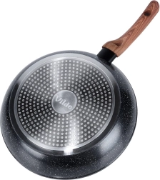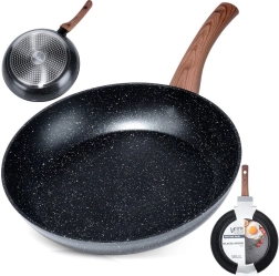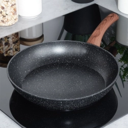Stílusos, 28 cm átmérőjű gránit serpenyő mindennapi főzéshez. A tapadásmentes kőhatású felületnek, a gyors és egyenletes hőelosztásnak, valamint a fa hatású ergonomikus nyélnek köszönhetően egészséges ételeket készíthet minimális zsiradékkal minden tűzhelytípuson, beleértve az indukciót is.